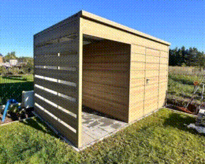 wiata : 1,5×2 m tylna ściana zabudowana blachą , boczna zabudowana panelami kolor : winchester