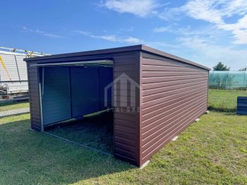 / Garaż blaszany 4x5m – brama uchylna – ciemny brąz – dach spad w tył SO118