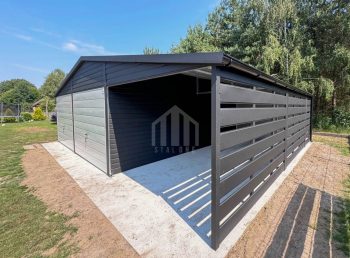 wiata : 3×6 m tylna ściana zabudowana blachą, boczna ściana zabudowana panelami kolor: antracyt mat 7016